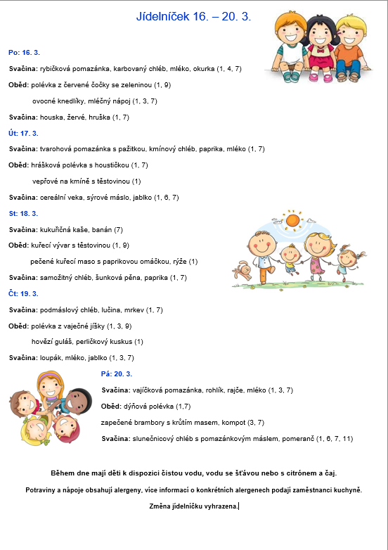 Jídelníček – Hříbci / Skřítci